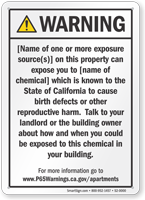 Yes, our consumer product exposure Prop 65 sign is one of our customizable templates where you can specify the chemical name and source of exposure, formatted at the minimum 72-point font size required by law with sign size adjusted as needed to accommodate additional chemical information.