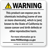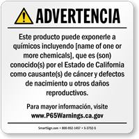 • • We offer a large selection of California Prop 65 signs and labels, both, in English and Spanish, that comply with the most recent regulations (Effective August 30, 2018).