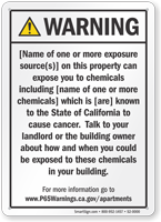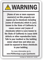 Yes, our consumer product exposure Prop 65 sign is one of our customizable templates where you can specify the chemical name and source of exposure, formatted at the minimum 72-point font size required by law with sign size adjusted as needed to accommodate additional chemical information.