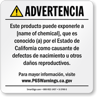 • • We offer a large selection of California Prop 65 signs and labels, both, in English and Spanish, that comply with the most recent regulations (Effective August 30, 2018).
