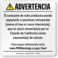 Yes, our consumer product exposure Prop 65 sign is one of our customizable templates where you can specify the chemical name and source of exposure, formatted at the minimum 72-point font size required by law with sign size adjusted as needed to accommodate additional chemical information.