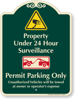 SignatureSign: Property Under 24 Hour Surveillance, Permit Parking Only, Unauthorized Vehicles Will Be Towed At Owners Or Operator's Expense K2-4815 Learn More...