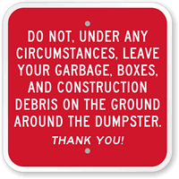 Your garbage will never really be clean, but post dumpster rules to keep things in order. Choose from aluminum or a range of reflective grades.