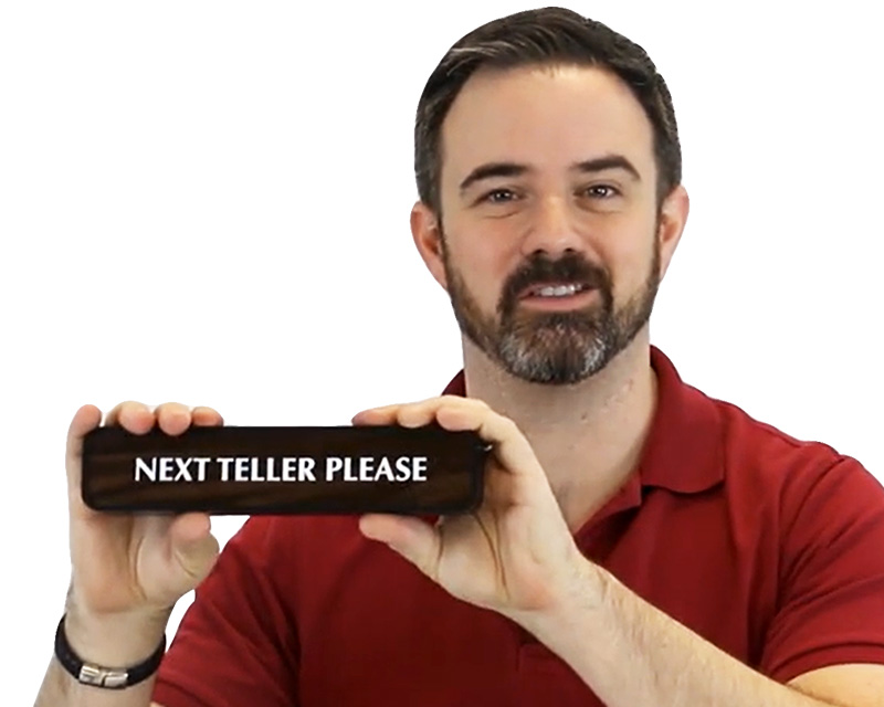 Tellers and Cashiers handle dozens or even hundreds of customers a day. Teller Signs are an easy and professional way to alert customers to closed lines, busy tellers and lunch breaks. Keep your business organized and lines moving quickly with teller signs. Perfect for banks, offices or stores.