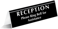 In that case, you can select from our range of Desktop Signs For Reception. These OfficePal™ Desk Tent Signs are in the shape of an inverted “V”. Simply place these signs on the top of your reception desk without needing any installation hardware. These Reception Desk Signs stand on their own and look the part in a professional setting.