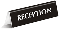 In that case, you can select from our range of Desktop Signs For Reception. These OfficePal™ Desk Tent Signs are in the shape of an inverted “V”. Simply place these signs on the top of your reception desk without needing any installation hardware. These Reception Desk Signs stand on their own and look the part in a professional setting.