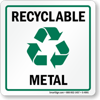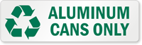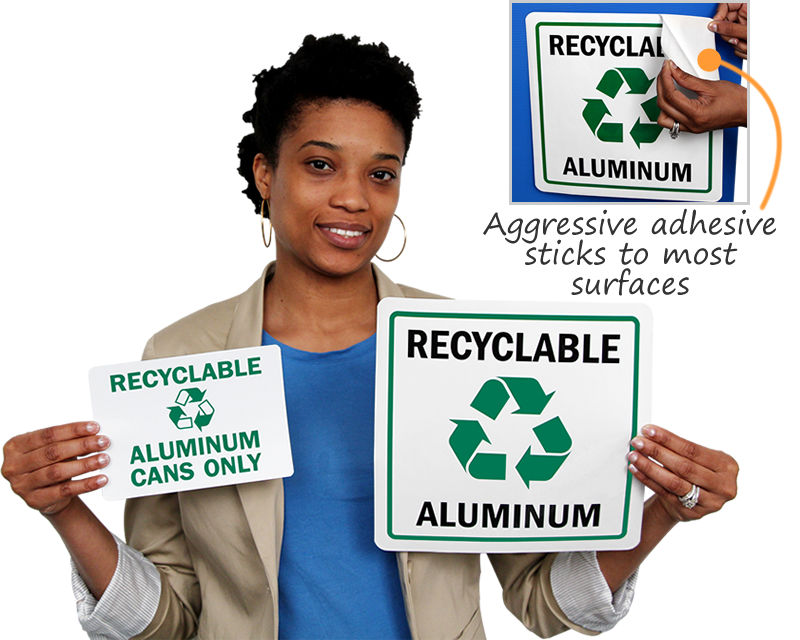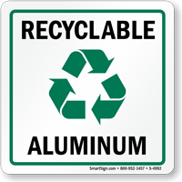 • • Since recycled aluminum requires 95% less energy to manufacture, Recycle Aluminum Cans Signs reduce waste and conserve energy.