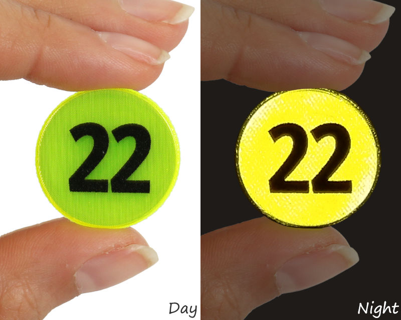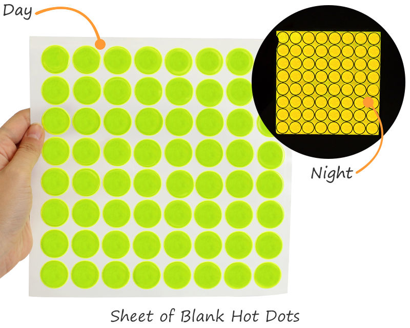 • • Fluorescent and reflective, these hot dots cannot be missed!