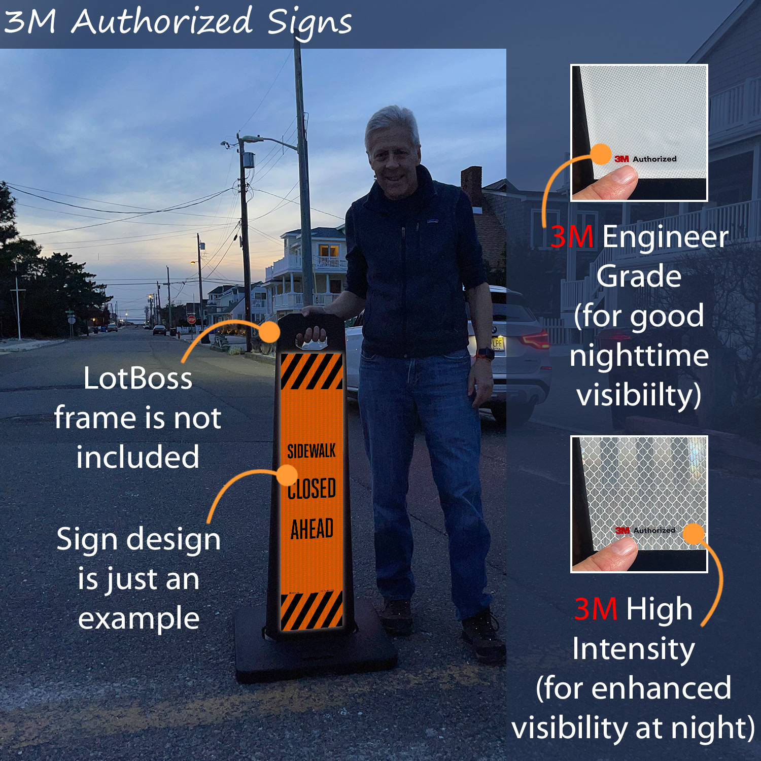 LotBoss Portable Sign Kit : LotBoss "CAUTION Parking Lot May... Part #:K2-5868-KIT 35.75" x 7.625" LotBoss Kit, 2 Engineer Grade Labels   Verified Purchase
