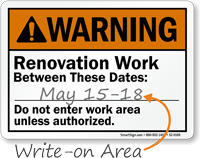 Common messages include our do not enter renovation work, renovation work no smoking / eating
