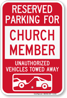 This Parking Lot sign will reserve the space for Church members and notify other drivers that unauthorized vehicles will be subject to towing away.