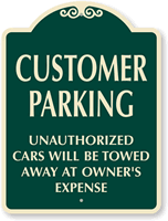 24" x 18" SignatureSign: Customer Parking : Unauthorized Cars Will Be Towed Away At Owner's Expense K-6865