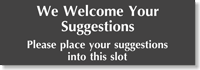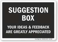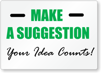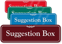 Make it easy for guests and workers to make suggestions. Suggestion Box Signs make it easy for you to pick up new ideas and help improve service.