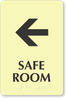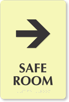 Safe room provide absolute protection in extreme weather conditions, including tornados and hurricanes. Safe room sign directs individuals to the safe room in your facility.