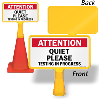 Size: 8" x 15" Material type: Reflective “No-Tip” Traffic Cone Sign - Two Sides Printed