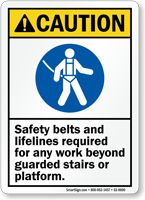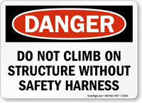 Make sure workers always wear a safety harness when working from such great heights. Use safety harness signs to remind employees that it's not just about the law — it's about safety.