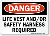 OSHA 1926 Subpart M requires fall protection - including personal fall arrest systems such as harnesses and lanyards - for construction work at 6 feet or above, and general industry walking-working surfaces at 4 feet. Posting safety harness required signs at elevated work area access points reinforces these requirements and provides clear PPE instruction to all workers before they enter a fall hazard zone.