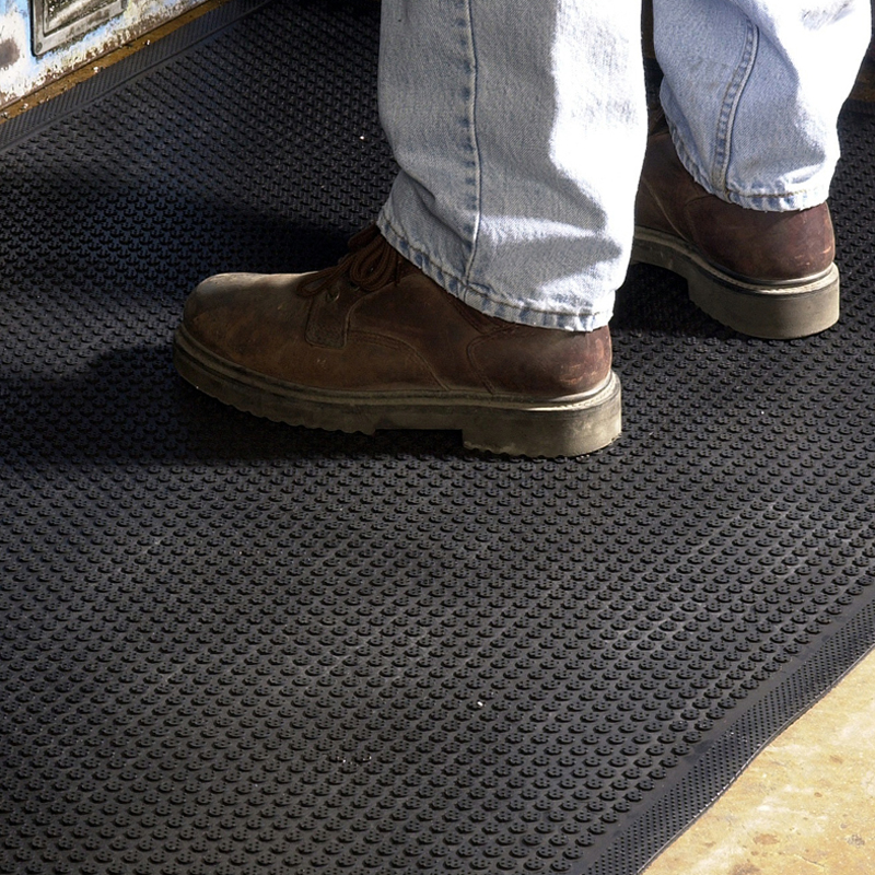 Safety Scrapeâ„¢ features Tri-Grip cleated backing to minimize mat movement, with slip-resistant round treads.