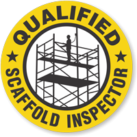 Using Scaffold Trained Hard Hat Stickers workers trained, quailfied, and certified to work on your scaffolding are clearly identified ensuring a safe environment for everyone.
