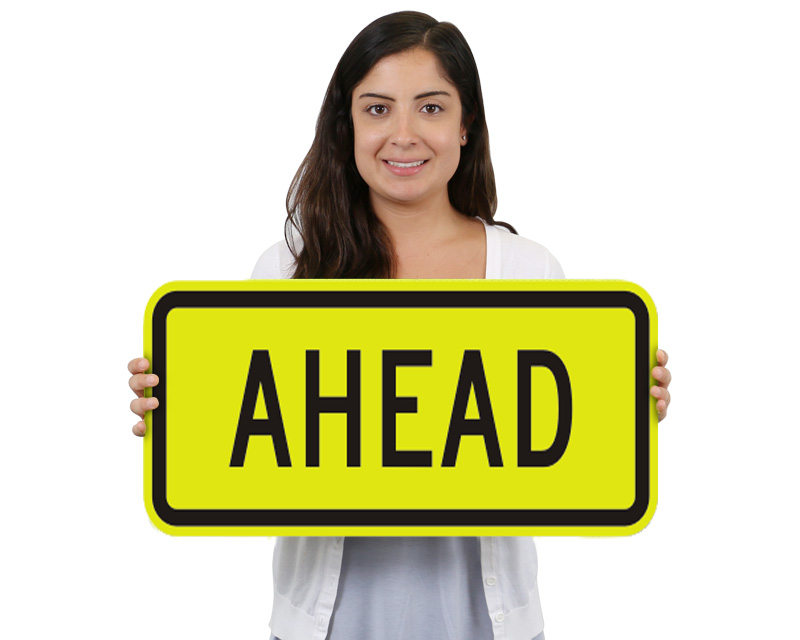 Prevent a terrible accident. School Ahead signs give drivers advance warning of an upcoming school so they can slow down and know to watch for children crossing. Post Stop Ahead signs to let drivers to slow down and get ready to come to a complete stop. Warning signs slow drivers down and prepare them for what's ahead.