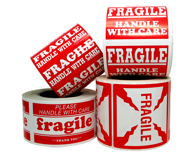If you’re looking for a small size, try our 1-inch x 3-inch Handle with CareLabels. These Shipment Handling Labels will not take up much space and fit well on very small packages. We also have 1.5-inch tall x 4 inch wide labels with additional words like “Fragile” or “Glass” with “Handle with Care”.