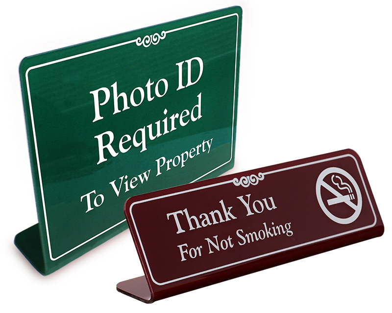 Add elegance and sophistication to your facility by using our ShowCase Desk Signs. Easy to use, convenient and portable, these beautiful yet affordable products come in a range of charming colors. Choose one that best suits your decor.