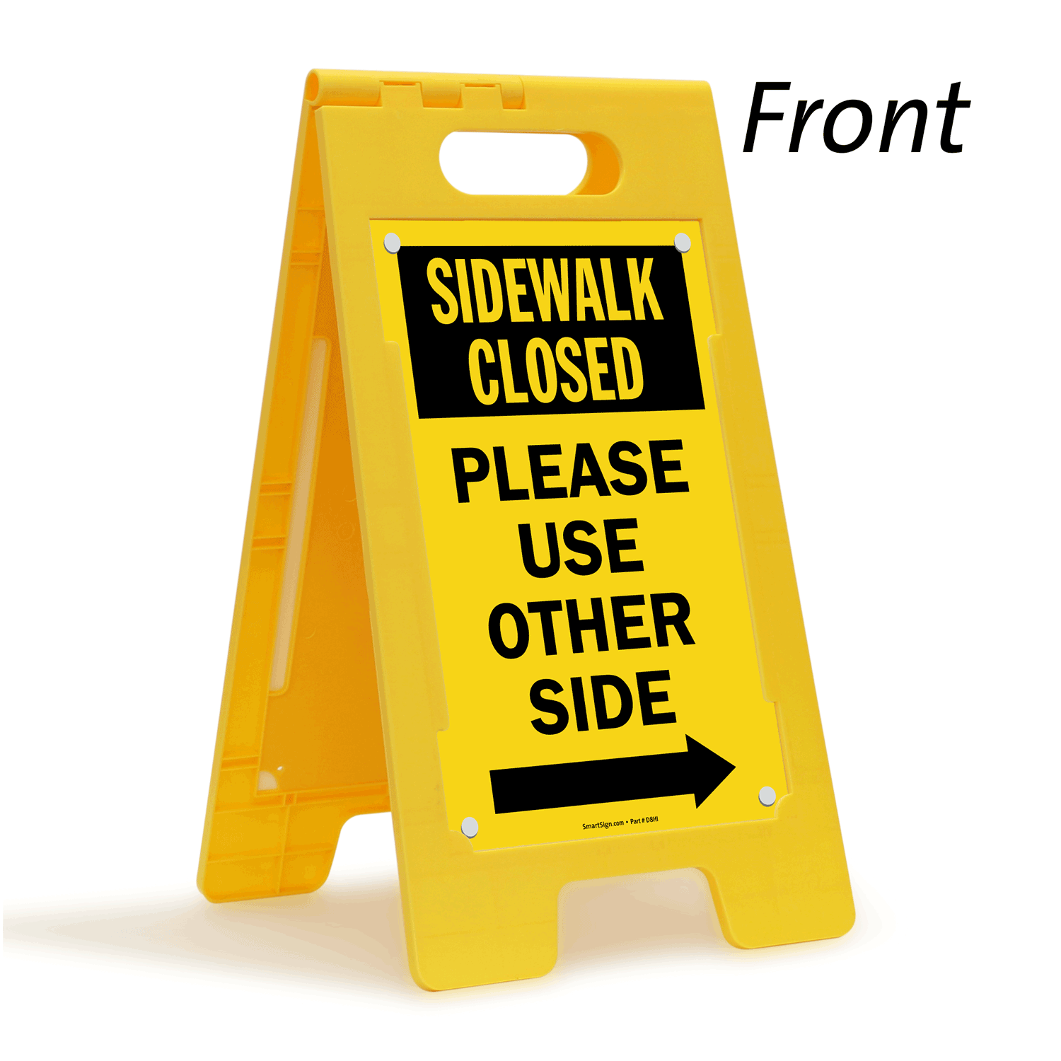 Notify visitors that the sidewalk is closed and indicate which direction to use, with the help of a 2-Sided Standing Floor Sign. Just fold and store the sign flat when sidewalk opens.