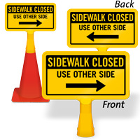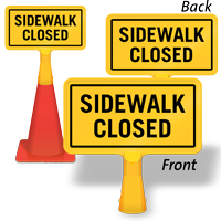 • • Choose from our large selection of Sidewalk Closed Signs. Signs are designed to be durable and comply with MUTCD standards when stated.