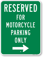 Reserved Parking Sign: Reserved For Motorcycle Parking Only (Choose Arrow) K-8255-R