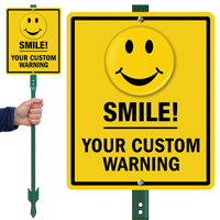 Grab attention with a smile, and let everyone know they're on camera. Choose from aluminum signs, stencils, or Z-shaped signs for a message that hangs from the ceiling.