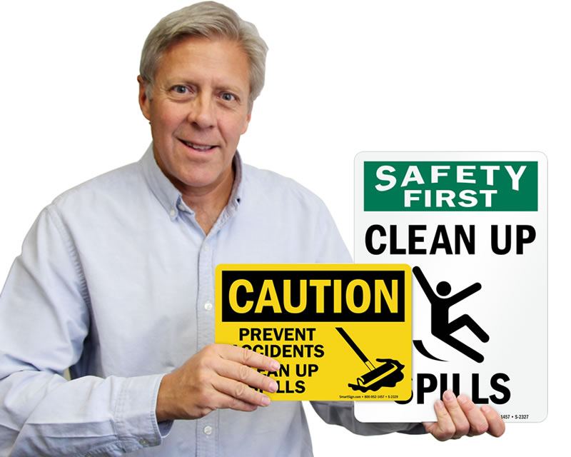 We carry spill clean-up signs for spill control stations, chemical storage areas, laboratory spill kit locations, and general industrial spill response points. Signs help employees quickly locate spill kits, identify spill containment procedures, and understand chemical spill response protocols - available in wall, projecting, and floor sign formats for maximum visibility at spill kit locations from any direction.