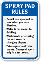 Spray Pads are a low-maintenance and fun way of cooling off. However, the possibility of injury is ever-present. Spray Pad Rules Signs let people know to watch themselves.