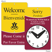 Create a personalized clock to inform your clients of your anticipated return time, complete with your logo and contact details. Even if you're unavailable, ensure your clients can reach you easily.