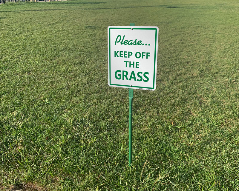 When people walk or play on lawns, it can lead to damage, compaction of soil, and unsightly wear and tear. Install "Keep Off the Grass" signs to discourage trespassing on private property. In residential areas, apartment complexes, or parks, these signs help protect private property from unwanted foot traffic.