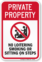 Looking to discourage excessive gatherings around your premises? Install a 'No Loitering' sign with bold messaging and vibrant colors to clearly convey your stance against trespassing.