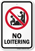 Looking to discourage excessive gatherings around your premises? Install a 'No Loitering' sign with bold messaging and vibrant colors to clearly convey your stance against trespassing.
