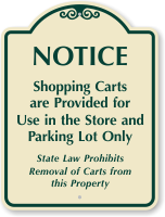 24" X 18" SignatureSign: Notice - Shopping Carts Are Provided For Use In The Store And Parking Lot Only. State Law Prohibits Removal Of Carts From This Property Learn More...