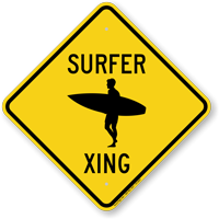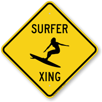 Whether you want to alert motorists to the beach traffic, or gift a clever sign to a surfer, these Surfer Crossing Signs do the job.