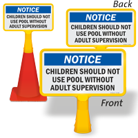 Want to display pool information, safety messages, and rules only for a temporary period? Hail our Pool ConeBoss Signs. Cone Top Pool Signs are very versatile and easy to use. Fit them over a regular-sized traffic or safety cone and that’s it — no installation hardware needed. What’s more? You can customize your message using our custom pool signs.