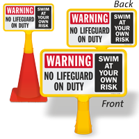 They are extremely visible and portable. placing a cone with a "no diving" sign right at the edge of the shallow end is a physical barrier that is harder to ignore than a wall sign. They are a type of portable pool sign.