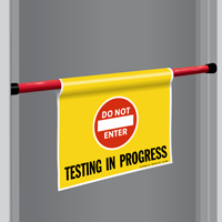 When you're dealing with dangerous high voltage situations or pressurized systems, place a Testing in Progress Sign to keep everyone protected and prevent others from disturbing you.