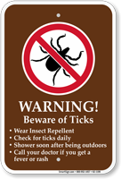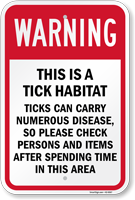 When hiking or camping, beware of ticks and tick habitats, which pose risks to humans and animals. Keep visitors informed with our Tick Warning Signs.