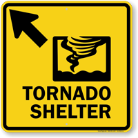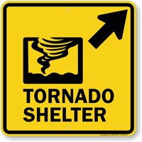 Tornado Shelter signs point the way to the emergency shelter. In dangerous situations, time is of the essence and well placed signs are crucial. For areas with frequent tornados, a tornado shelter is important. But without signs directing people, the shelter won't fulfill its purpose. Post signs to ensure that everyone knows the way to the tornado shelter in case of emergency.