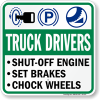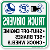 Truck Drivers Signs are perfect for any truck or truck stop area. Driver's Instruction Signs help direct drivers to designated areas and remind them to chock wheels or set brakes. Signs and Labels are an inexpensive and efficient way to help prevent accidents.