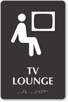 Let family members, visitors, and patrons identify TV Lounge in your hospital. Signs with directional arrow help everyone find their way to the TV room without any confusion.