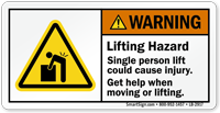 Two person lift labels warn workers that a load is too heavy or bulky for one person to lift safely. These labels help prevent back injuries and support proper material handling practices. You can explore all options on our two person lift labels page or choose a product such as the multi person lift required ANSI label. OSHA’s ergonomic guidelines support team lifting for heavy loads.