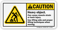 Two person lift labels warn workers that a load is too heavy or bulky for one person to lift safely. These labels help prevent back injuries and support proper material handling practices. You can explore all options on our two person lift labels page or choose a product such as the multi person lift required ANSI label. OSHA’s ergonomic guidelines support team lifting for heavy loads.