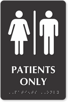 • • Our restroom signs comply with ADA signage requirements with raised letters, California Grade II Braille, symbols for enhanced accessibility.