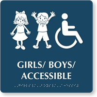 • • Our restroom signs comply with ADA signage requirements with raised letters, California Grade II Braille, symbols for enhanced accessibility.