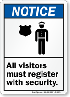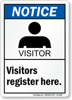 • • Our varied selection of Visitors Must Register Signs and Visitors Must Report To Office Signs allows you to instruct people to sign in, point them in the right direction, or set rules while visitors or vendors are on your property.
